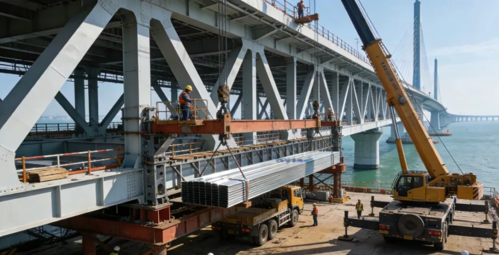 हाँगकाँग-झुहाई-मकाऊ ब्रिज प्रकल्प ब्रिज स्टीलसाठी नियंत्रित रोलिंग आणि कूलिंग तंत्रज्ञानाच्या नवीन पिढीचा वापर करून उत्पादित केलेल्या हॉट रोल्ड स्टील स्ट्रिपचा मोठ्या प्रमाणावर वापर करतो, ज्यामध्ये पाईपचे ढीग आणि मुख्य नेव्हिगेशन ब्रिज स्ट्रक्चरल घटक समाविष्ट आहेत, एकूण 30,000 टन. वॉटर-कूल्ड हॉट-रोल्ड स्ट्रिप स्टीलमध्ये उत्कृष्ट सामर्थ्य, कडकपणा, वेल्डेबिलिटी आणि समुद्राच्या पाण्यातील गंज प्रतिरोधक क्षमता असते, ज्यामुळे वेल्ड पोस्ट डिलेमिनेशन आणि पारंपारिक ब्रिज स्टीलमध्ये अपुरा कडकपणा या समस्यांचे निराकरण होते. हे क्रॉस-सी ब्रिजच्या कठोर नैसर्गिक वातावरणासाठी योग्य बनवते, "जगातील नवीन सात आश्चर्यांपैकी एक" म्हणून प्रकल्पाची ओळख होण्यास हातभार लावते.